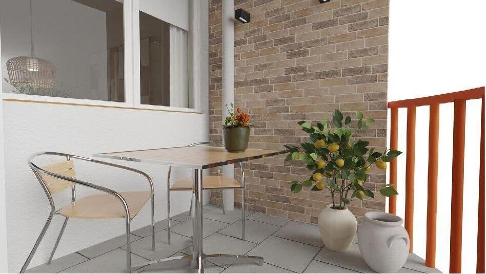 Via de galerij bereikt u de meterkast en de entree van het appartement.