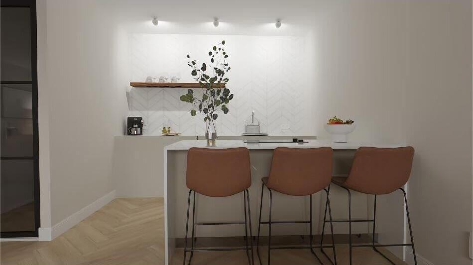 Het appartement wordt leeg opgeleverd.