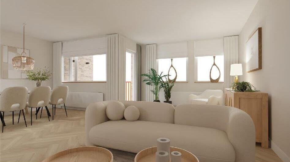 Ruime woon- en eetkamer van ca. 36 m² met toegang tot het balkon